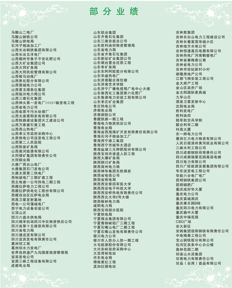 集團(tuán)通過了IS09001質(zhì)黽管理體系認(rèn)證、IS014001環(huán)境管理標(biāo)準(zhǔn)體系認(rèn)證,同時(shí)集團(tuán)系列產(chǎn)品均獲國家工業(yè)產(chǎn)品生產(chǎn)許可證,國家強(qiáng)制性CCC認(rèn)證,礦用產(chǎn)品均通過國家安檢局MA煤安標(biāo)志認(rèn)證,船用產(chǎn)品均通過...